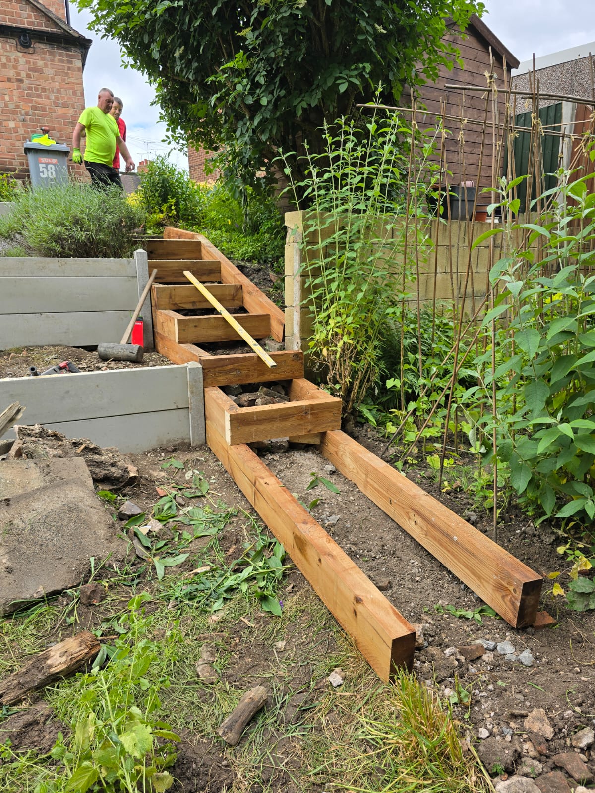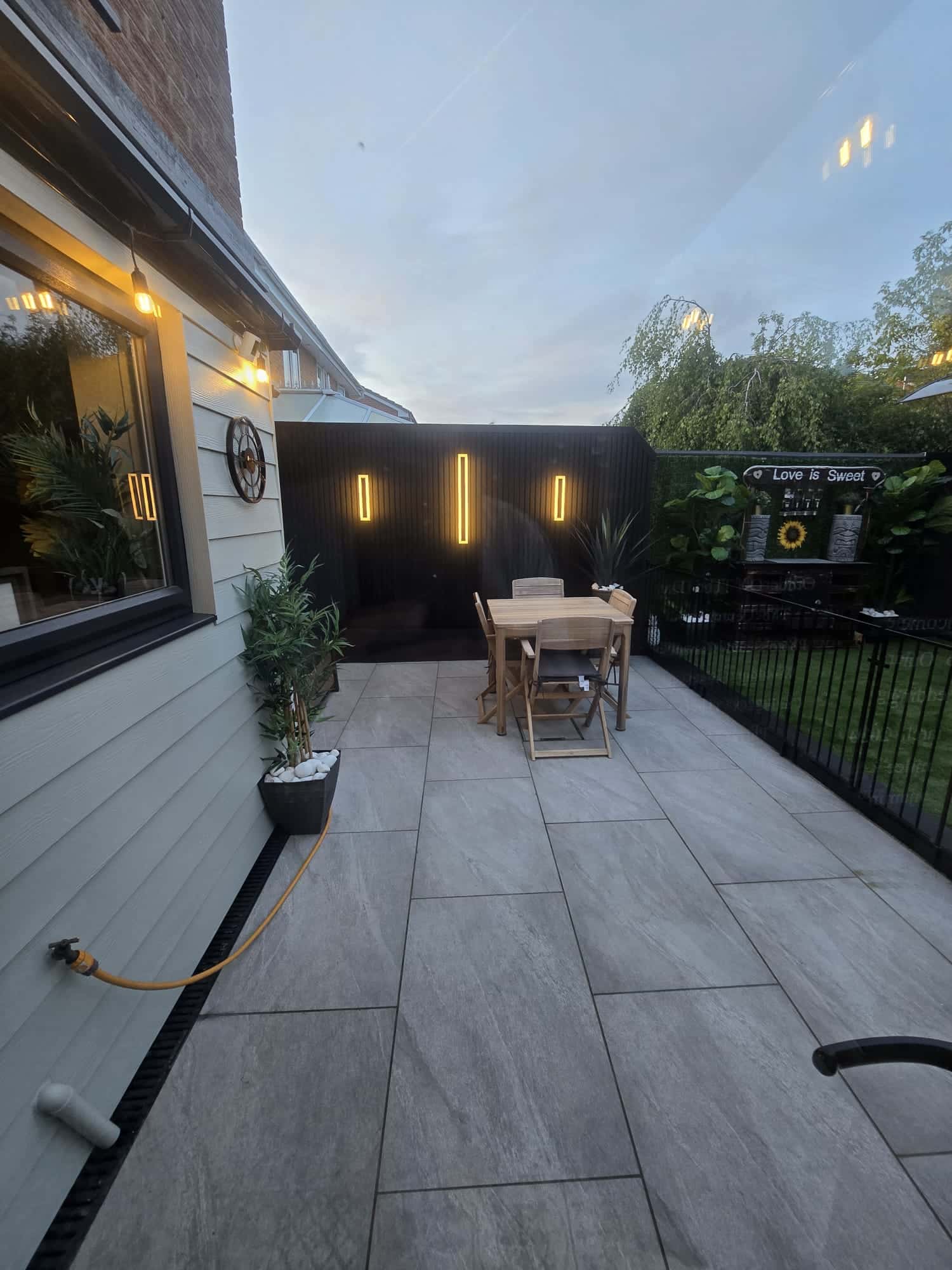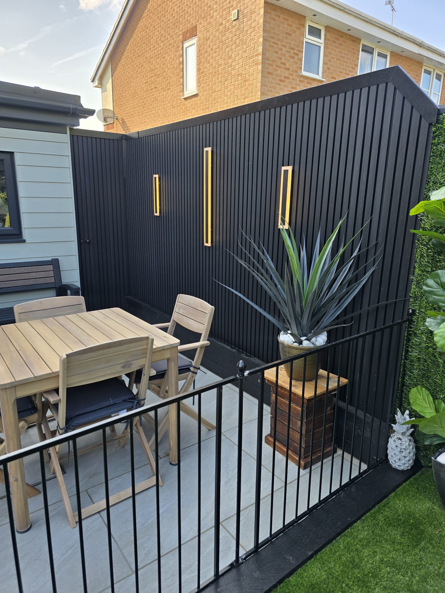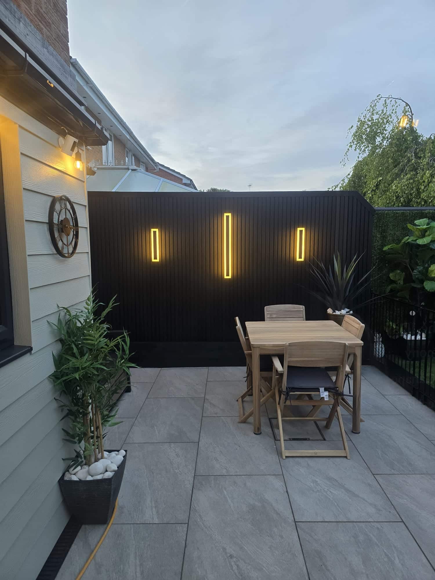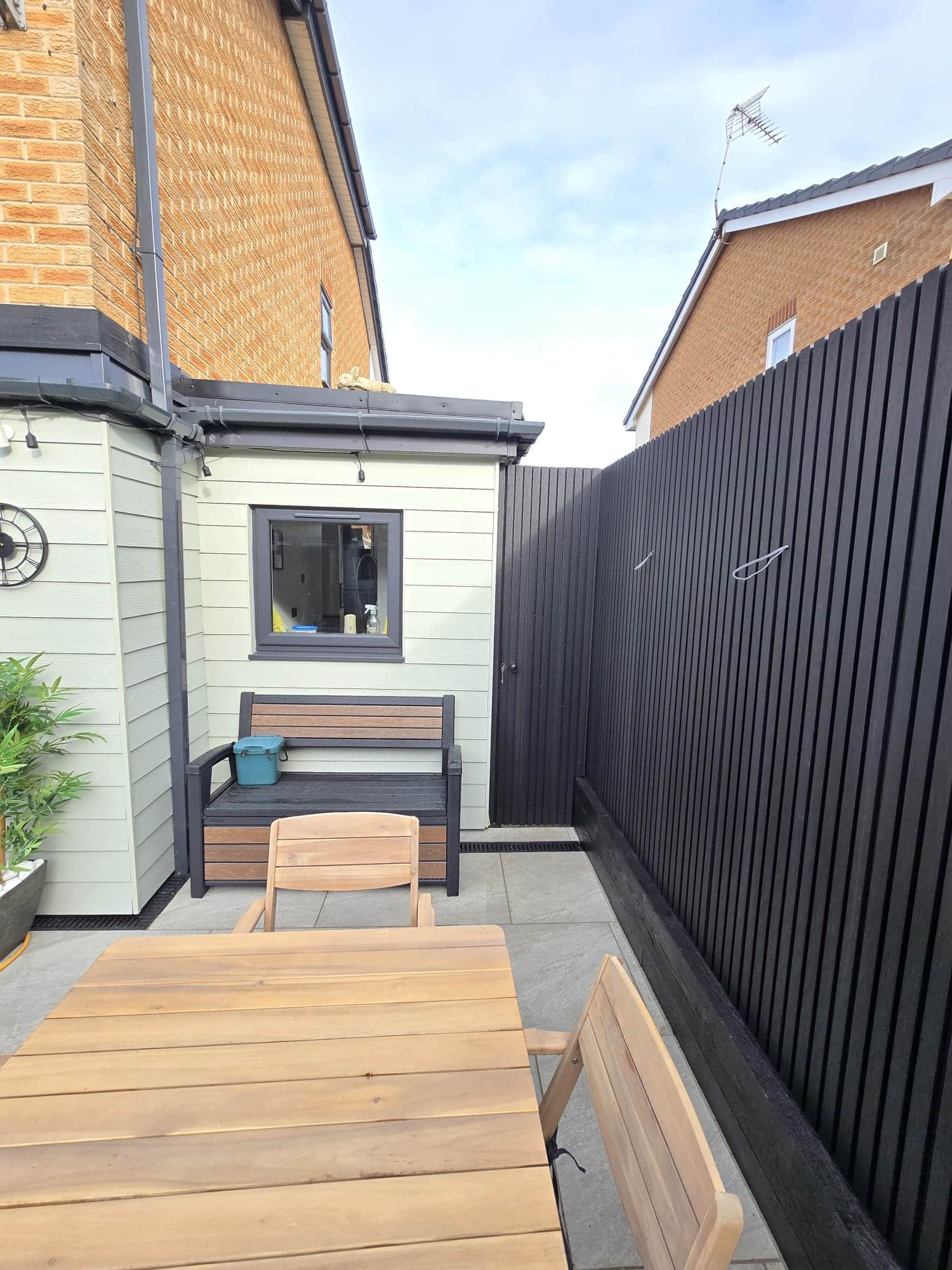 Landscaping project: turf, sleeper work, granite grey Modena patio & paths