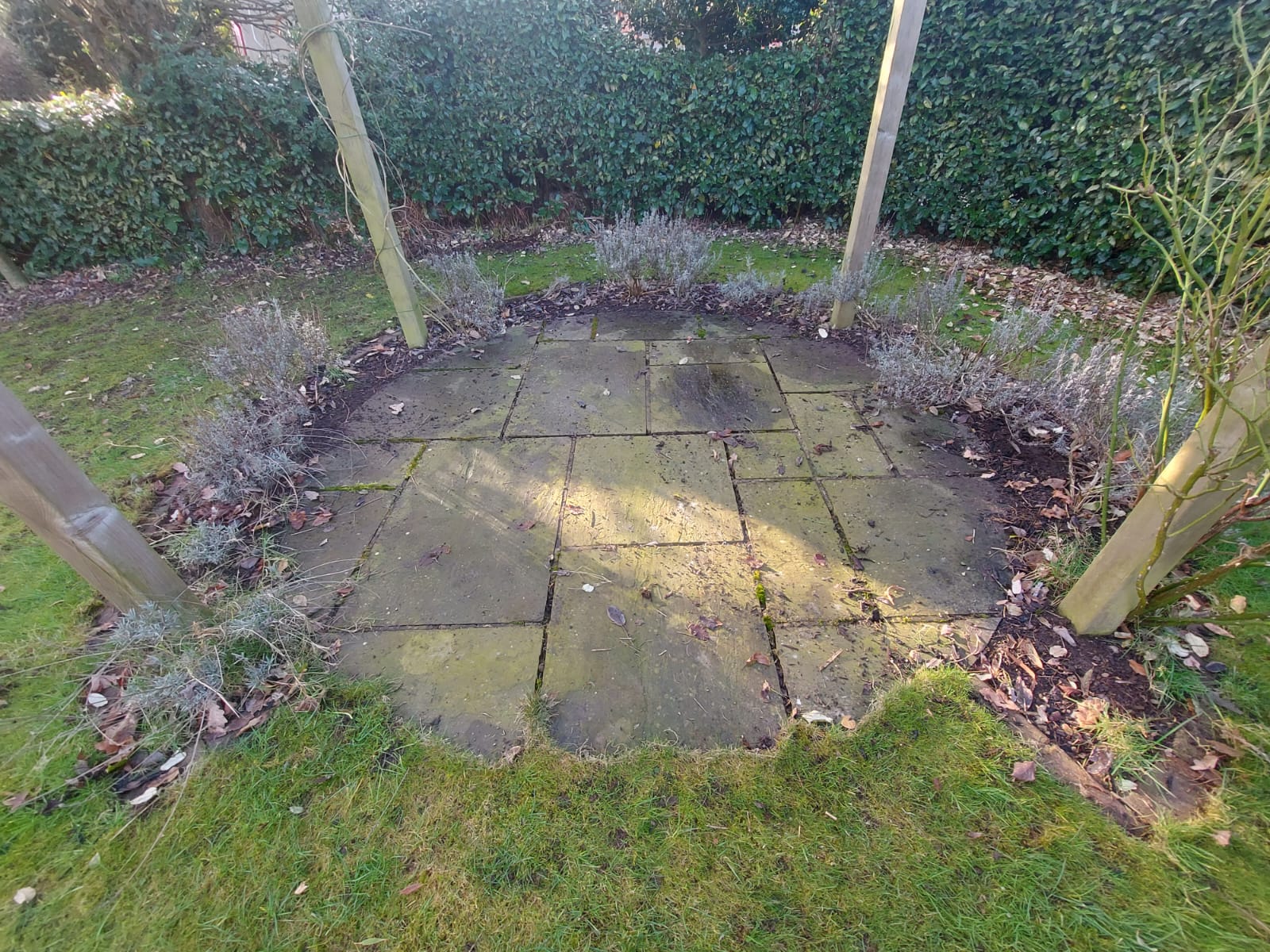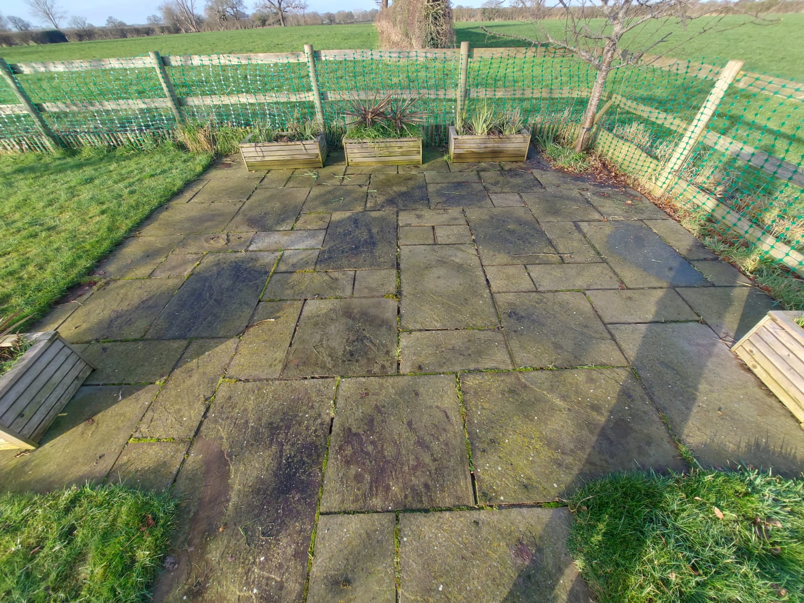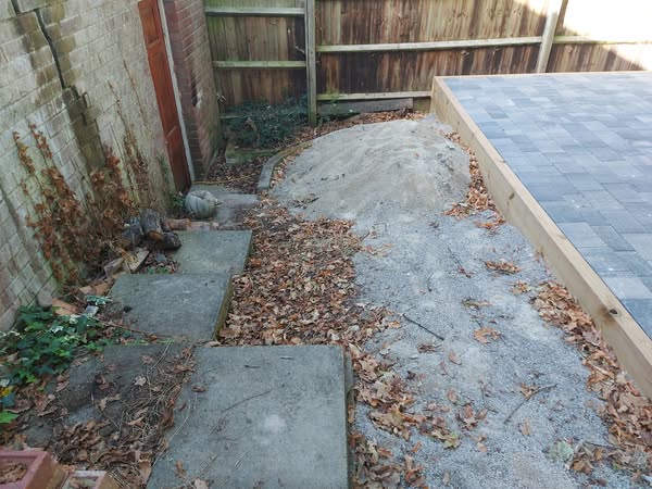 cleaned, rejoined, & relayed traditional Indian sandstone patio & path